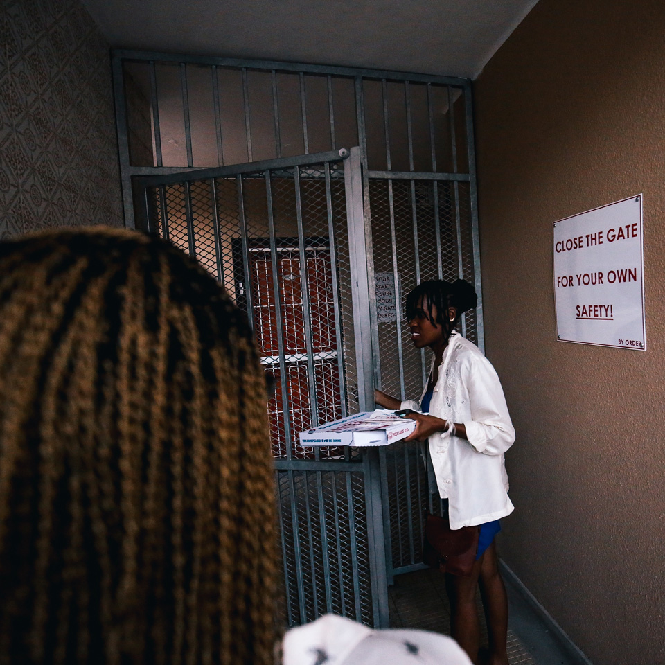 [6/7]: In 2015 verspreidde zich op universiteiten in heel Zuid-Afrika de #FeesMustFall studentenbeweging. Studenten eisten een algemene verlaging van het collegegeld zodat universiteiten toegankelijker zouden worden voor (vaak zwarte) mensen uit gezinnen met lagere inkomens. Sethembile was actief op haar campus op de University of Cape Town met de ambitie alle vormen van economische apartheid tegen te gaan. “We vonden dat er zo veel moet veranderen. Als je naar het verleden kijkt, dan zie je dat elke vrijheidsstrijd gepaard gaat met een sociale revolutie. We pleegden ruimtelijke interventies en probeerden allerlei vormen van activisme op de universiteit. We vergaderden met alle op de campus betrokken partijen omdat de problemen, de onderdrukking overal op de campus te vinden waren. Van de schoonmakers en de beveiliging tot de studenten. Overal was een duidelijke, oneerlijke hiërarchie. Zo bitter, zo fout. Dus wij zeiden: vanaf nu moeten dingen anders!”