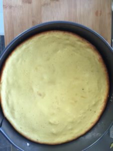 De taart is gaar als je bruine randjes ziet ontstaan bij de springvormrand.