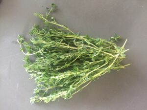 Kruimel royaal goede jonge geitenkaas hierover heen en verse tijm