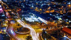 Een open stukje tussen palmbomen, een weggetje waar we aan beide kanten het verkeer steeds even tegen kunnen houden. We moeten opschieten, het is al over vieren, straks staat de zon te laag. De scène moet van dichtbij gefilmd, van veraf, en ook de drone wordt ingezet.