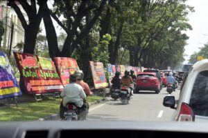 Andere gewoontes https://project2021.ntr.nl/andere-gewoontes/ Sat, 17 Dec 2022 11:58:02 +0000 https://project2021.ntr.nl/?p=1378 ... Lees verder]]> Het is een vrije dag, ik ga met Atik lunchen in een visrestaurant dat hoog staat aangeschreven. We rijden er naar toe en ik krijg de kans om een fenomeen vast te leggen dat gisterenavond al opviel: talloze ‘bloemenborden’ langs de kant van de weg met de namen Rahul en Syakinah. Ik zag deze borden elders ook al en begrijp dat het gebruikelijk is om zo een aanstaand bruidspaar geluk te wensen. Meestal zie je er dan twee, of drie, soms vijf. Maar dit…. het moeten er zeker honderd zijn, het houdt niet op. Wie zijn dit?
