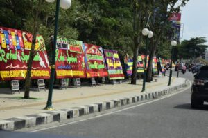 Mohammed Rahul blijkt een lokaal parlementslid te zijn. Duidelijk iemand met veel connecties in deze stad van de palmolie. Het huwelijk is vandaag en de belangrijkste verkeersader is vanmorgen afgezet voor de bruidsstoet, zo ontdekt Atik in de lokale pers – tot ergernis van bewoners natuurlijk. Zijzelf heeft ook weinig goede woorden over voor deze overdaad aan felicitaties, het geld kan beter besteedt worden. Zo'n bord kost al gauw 1 miljoen rupiah, zo'n 60 euro. Morgen gaan al deze borden naar de vuilnis.
