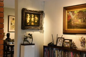 De familie Oei bracht het er toen zonder kleerscheuren vanaf. Voor de kleine Hong Djien was het een angstige ervaring. Maar, zo wuift hij weg, je was een kind en je eigenlijk niet bewust van de vele gevaren van die tijd. Hij heeft hem wel een levenslange fascinatie voor kunst over de revolutie bezorgd. En eigenlijk voor alle hedendaagse kunst. Waar je ook kijkt in zijn huizen, overal hangt, staat of ligt wat, in alle soorten, maten en stijlen Een fascinerende ervaring.
