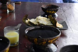 Lekker vind ik het niet, maar dat wordt ruimschoots gecompenseerd door de bijbehorende lokale koekjes, de bikan. Het zijn een soort hele smeuïge kokosmakronen, gemaakt van kokos en rijstbloem en gebakken op speciaal houtvuur. Om je vingers bij af te likken.