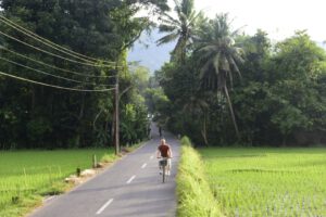Sawah en polder https://project2021.ntr.nl/sawah-en-polder/ https://project2021.ntr.nl/sawah-en-polder/#comments Wed, 21 Dec 2022 15:35:00 +0000 https://project2021.ntr.nl/?p=1406 ... Lees verder]]> Op het lijstje ‘te doen’ staat een scène waar Hans door de rijstvelden fietst. Vanmiddag zien we kans dat te filmen. Het lijkt makkelijk, maar is lastig. Want waar zijn de rijstvelden zonder zicht op elektriciteitskabels? Waar een weg waar niet voortdurend brommers en auto’s het filmen onmogelijk maken? En dan moet de zon ook nog goed staan….