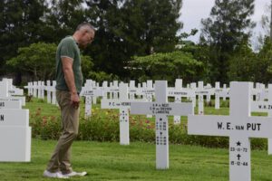 Erevelden https://project2021.ntr.nl/erevelden/ Fri, 23 Dec 2022 15:49:33 +0000 https://project2021.ntr.nl/?p=1420 ... Lees verder]]> ‘Dit is de mooiste’, denk ik als we rondlopen op Candi, het Nederlandse ereveld voor militairen in Semarang. Ik heb in Indonesië eerder erevelden bezocht, maar Candi ligt prachtig tegen een heuvel, met zicht op de stad. Het is de grootvader van Hans die dit terrein heeft gekozen, direct na zijn aankomst in Semarang met de manschappen van de T-brigade, in maart 1946. ‘Rekening houden met gesneuvelden, het hoort bij het militaire bedrijf’, constateert Hans.