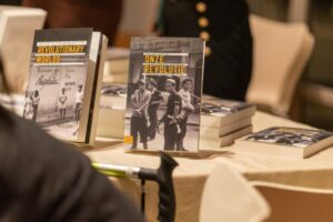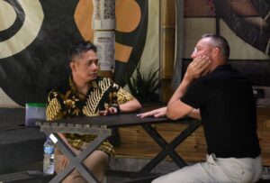 Ook bij de discussie worden zinvolle opmerkingen geplaatst. Maar eerlijk is eerlijk, zo’n presentatie is er ook voor de gezelligheid. Na afloop bijpraten met mensen die je al een tijdje niet hebt gezien. Of juist nog kort geleden, zoals Abdul Wahid, medesamensteller van de boeken en hoofd van de geschiedenisafdeling van de Universiteit Gadjah Mada in Yogyakarta. Ik sprak hem daar afgelopen december voor onze serie. Het leverde boeiende verhalen op die ik nu in de montage uitwerk.