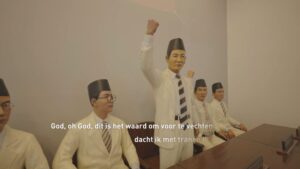 Hans vraagt gids Vicky naar de rol van Soekarno bij het ronselen van jonge mannen. Diens samenwerking met de Japanse bezetter was lang een taboe in Indonesië. Dat is aan het veranderen. Veel mensen hebben de beelden uit dat bioscoopjournaal van 1944 inmiddels gezien, ook Vicky. Hij aarzelt, kloppen die beelden wel? Voor hem is het moeilijk te geloven dat de vader des vaderlands doelbewust landgenoten voorloog over het werk dat ze gingen doen.